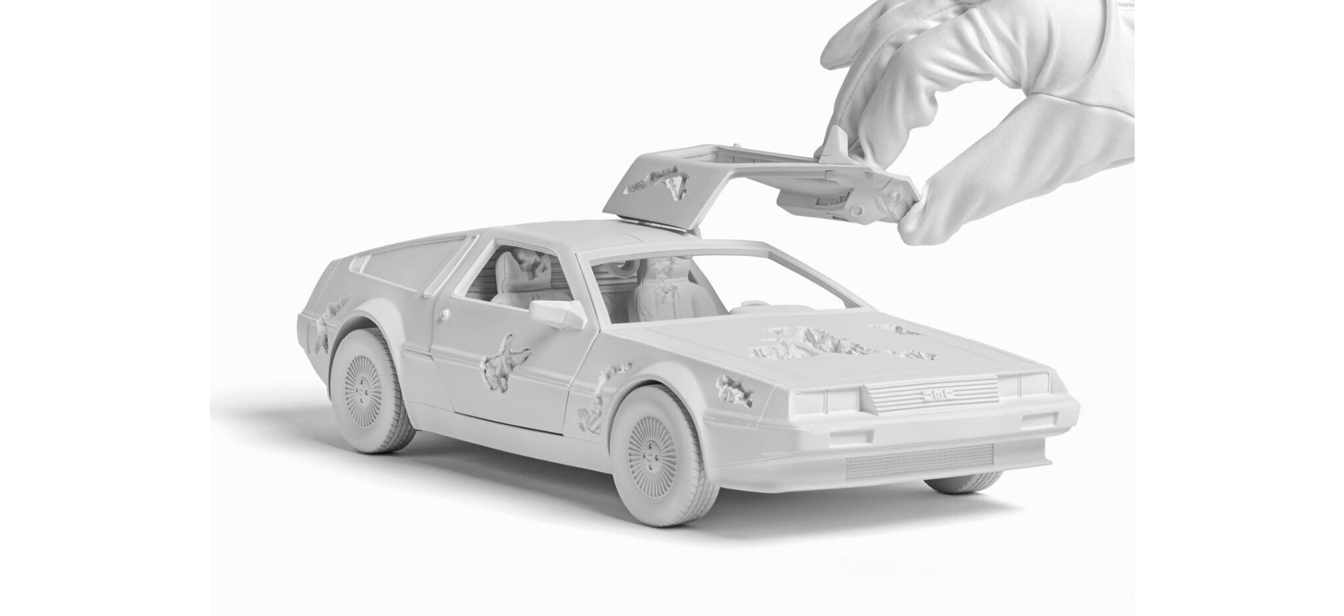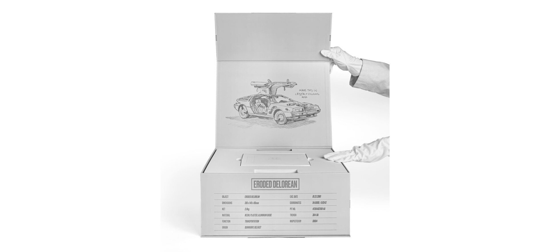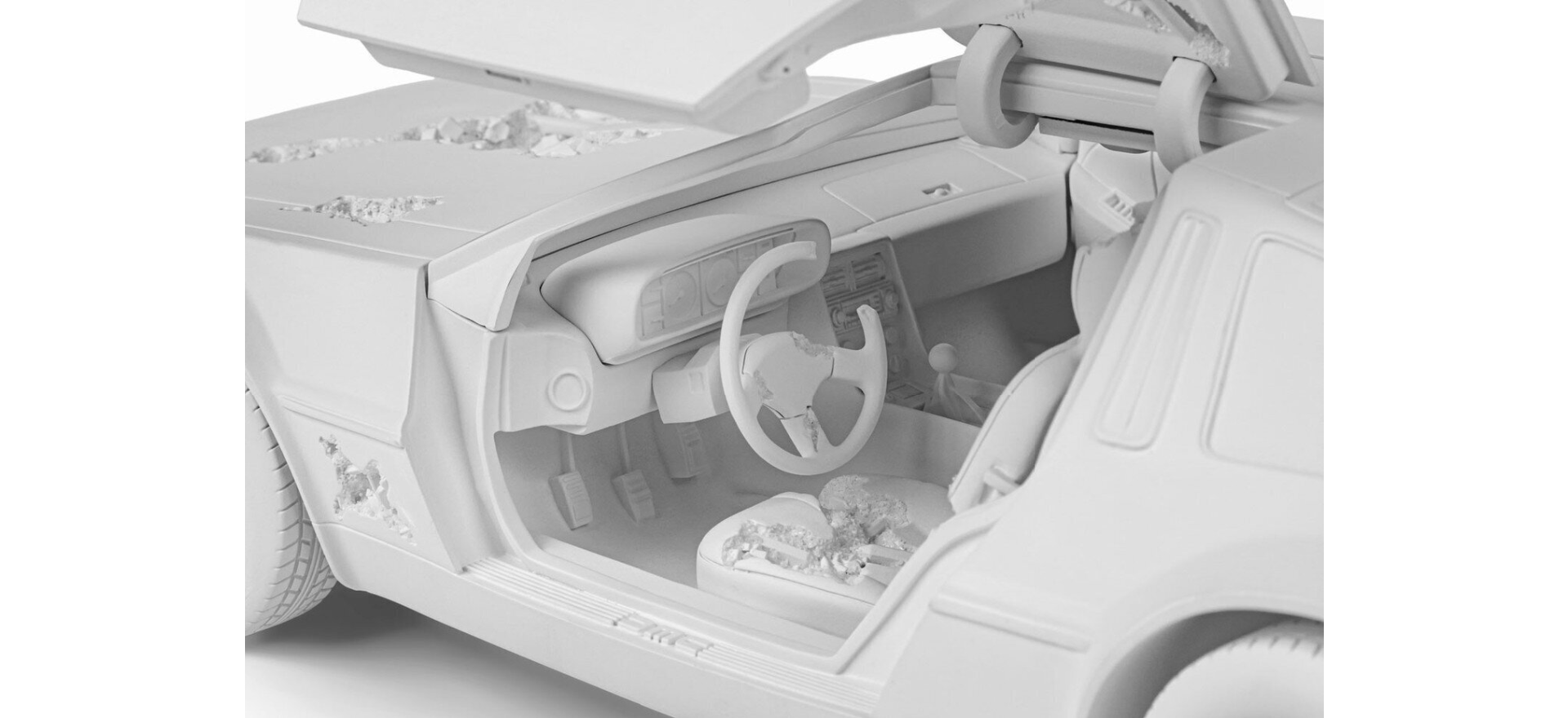 The Eroded DeLorean draws inspiration from Daniel Arsham’s 2018 life-size sculpture of the legendary 1981 DMC DeLorean—immortalized in the Back to the Future trilogy. Merging nostalgia with Arsham’s signature eroded aesthetic, this piece appears as a relic from an alternate timeline, blurring the boundaries between past, present, and future.