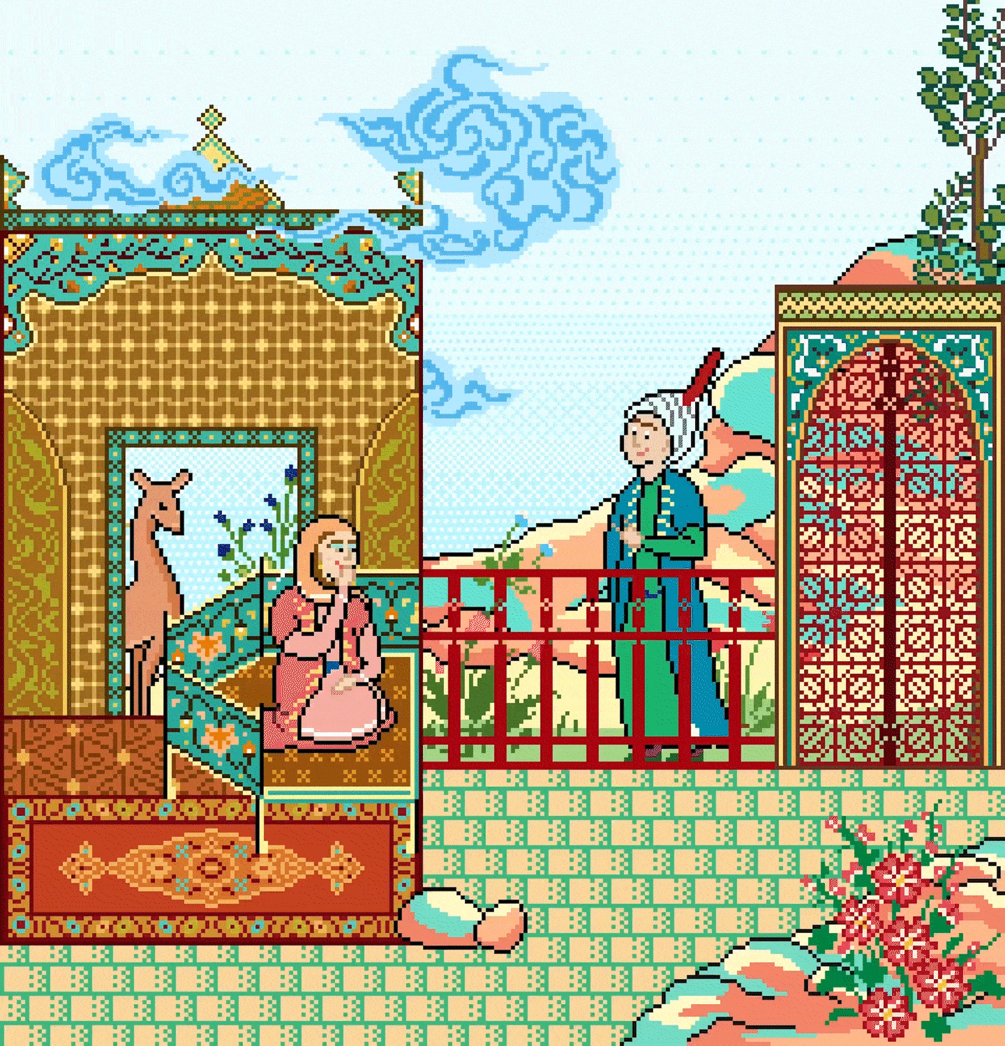 This artwork is inspired by Persian miniature, pixelated and animated using Adobe Photoshop.