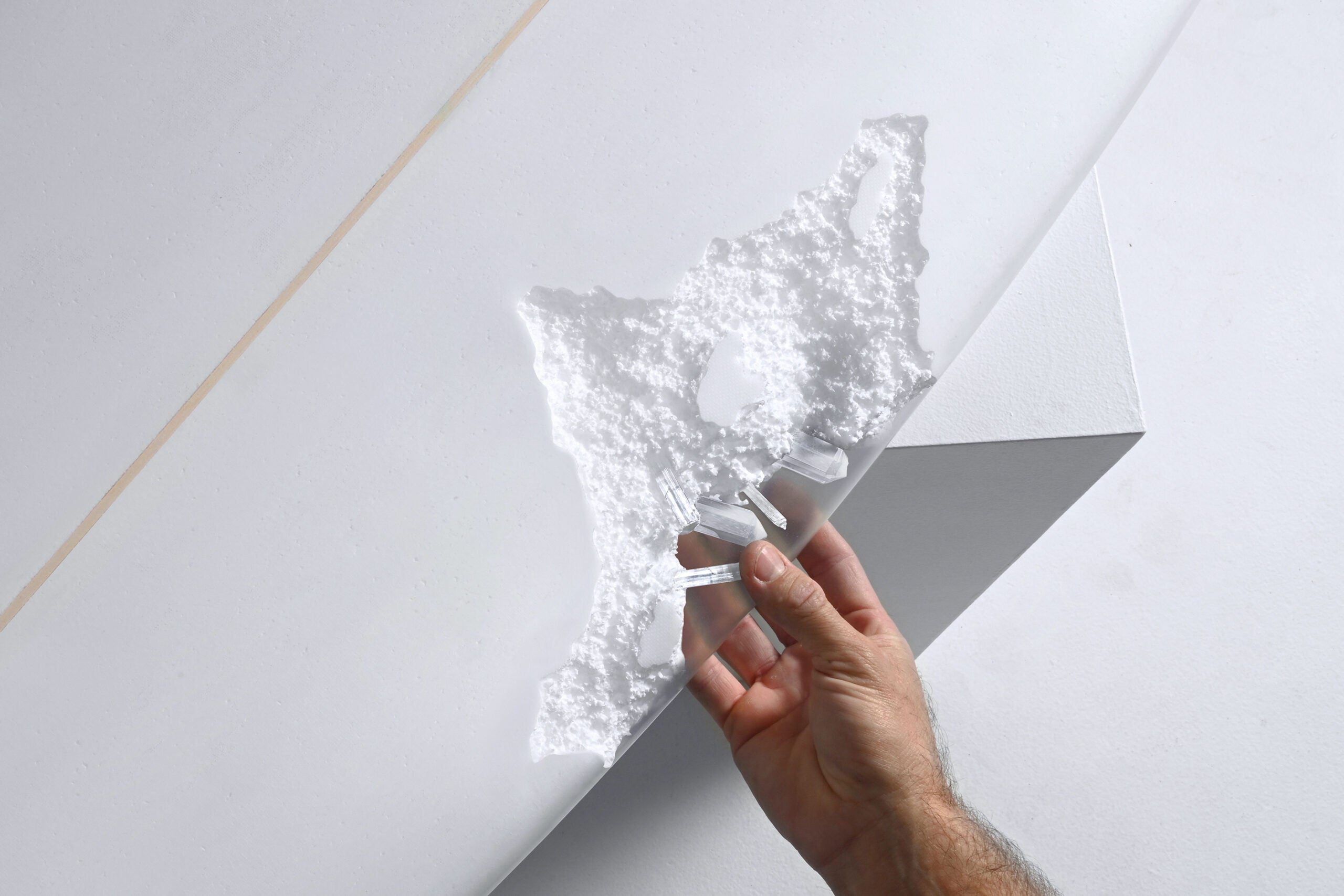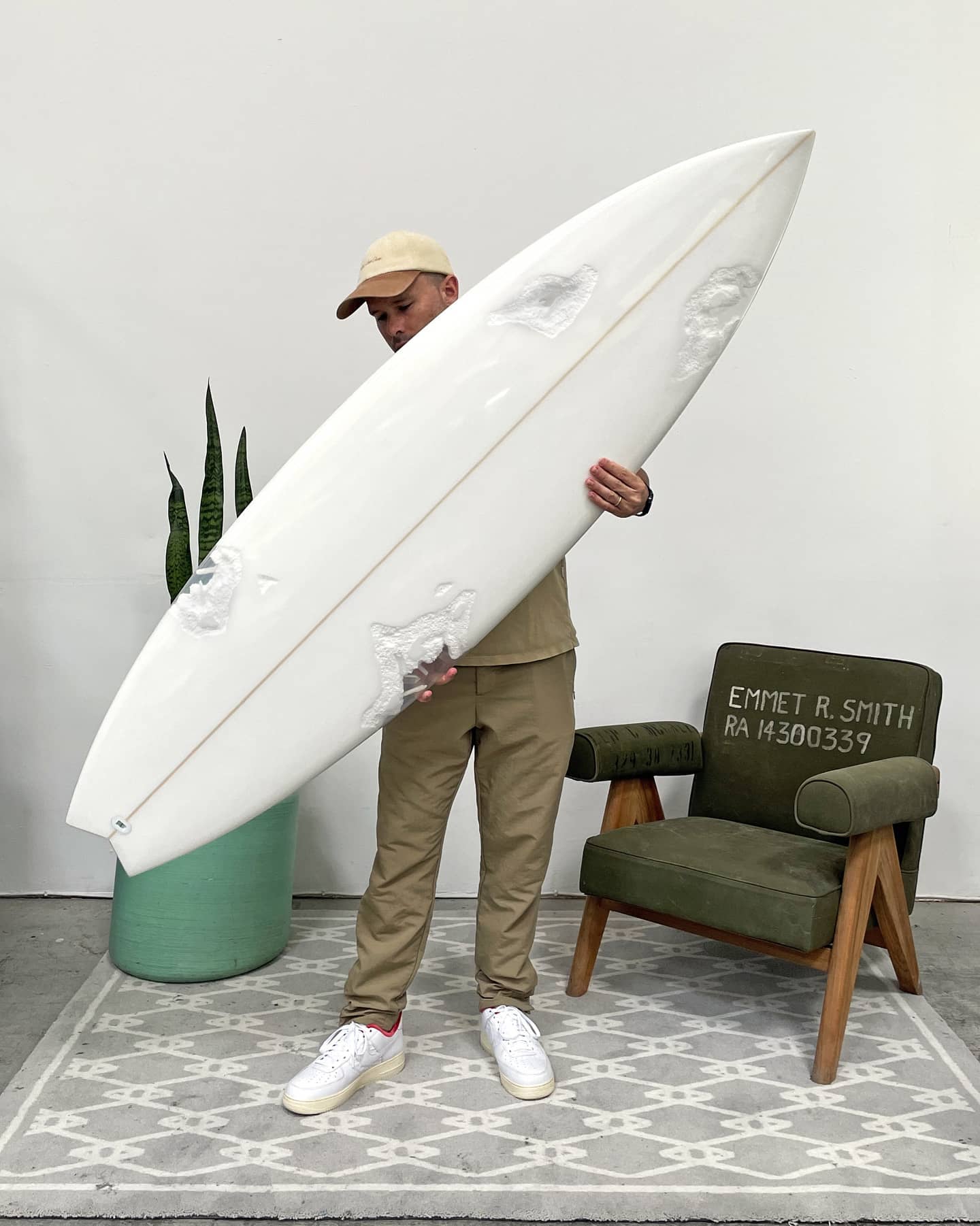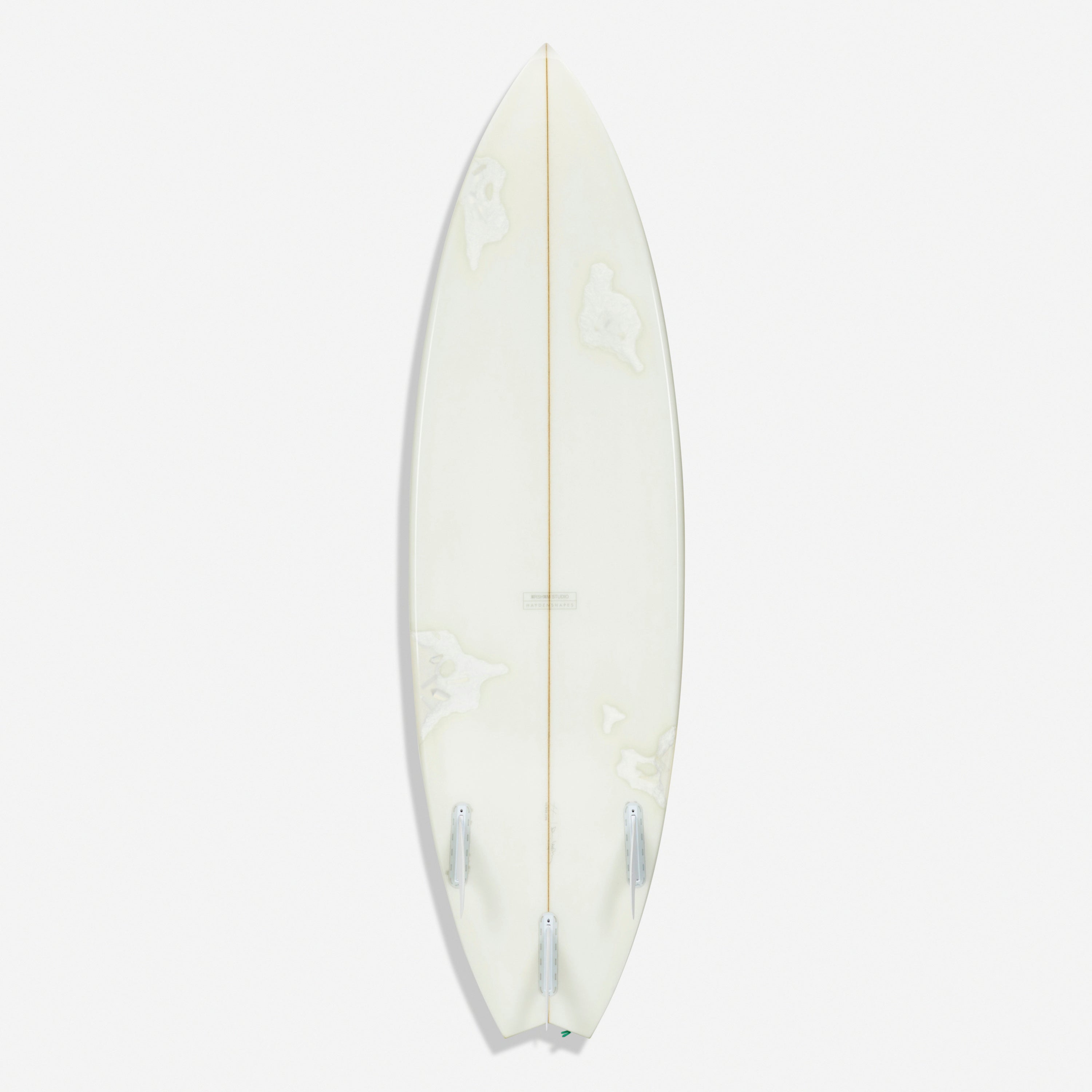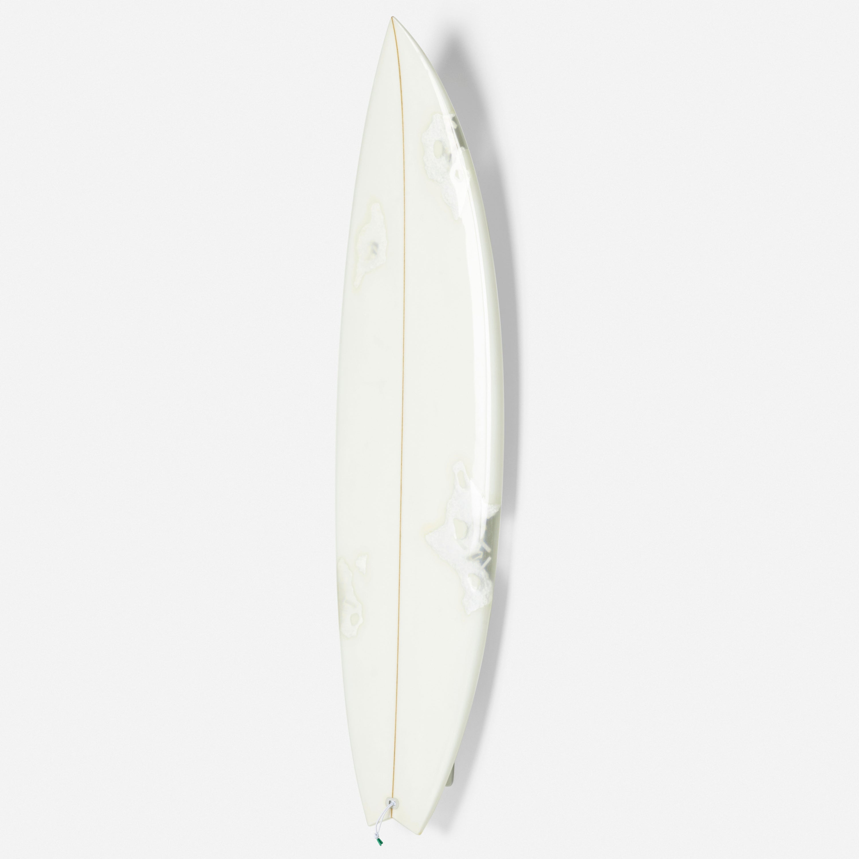 Daniel Arsham partnered with Haydenshapes to create a fully functional Eroded Surfboard, blending his signature crystalized aesthetic with high-performance surfboard design. The crystal erosions are enclosed within hollow cavities, ensuring a smooth and enjoyable ride. Equipped with Thruster Future Fins for enhanced stability and control, this board is both an art piece and a functional surfboard. Each Eroded Surfboard includes a custom wall mount for seamless display when not in use.